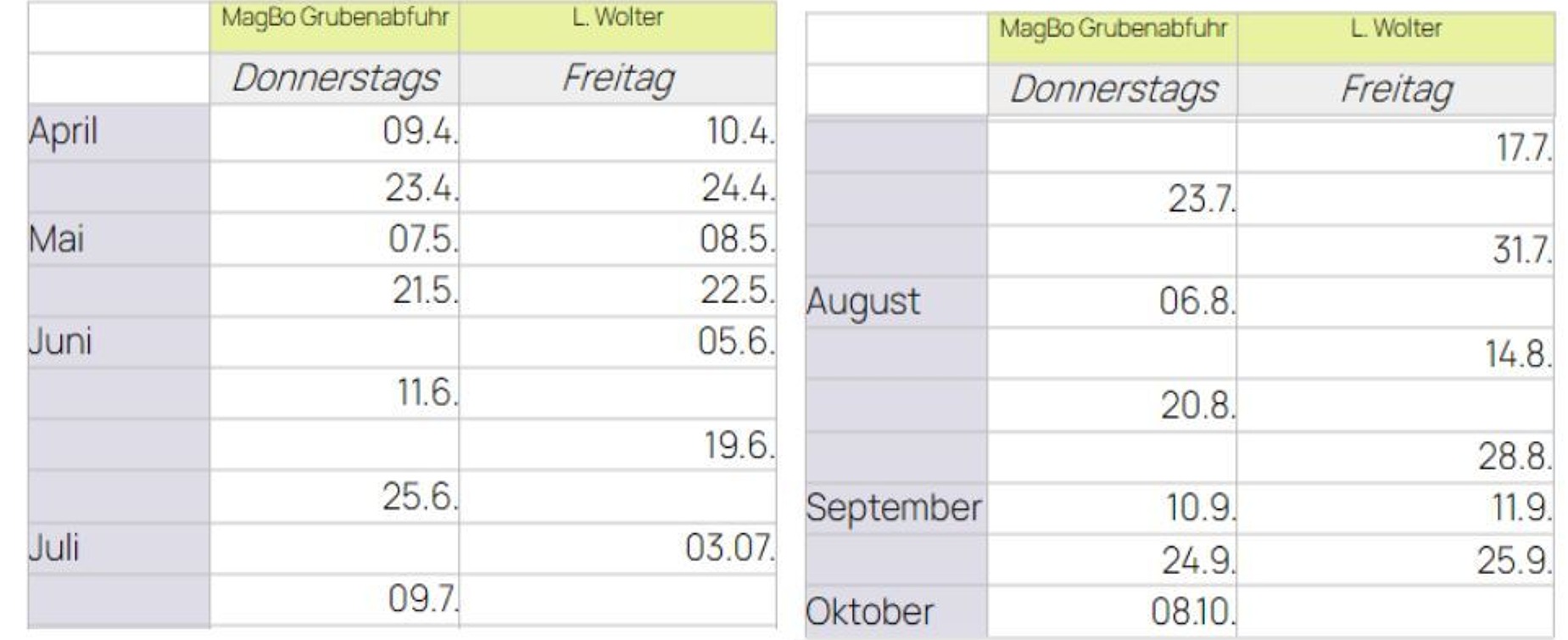 Es gibt zwei Unternehmen, die bei uns regelmäßig zur Grubenabfuhr kommen: