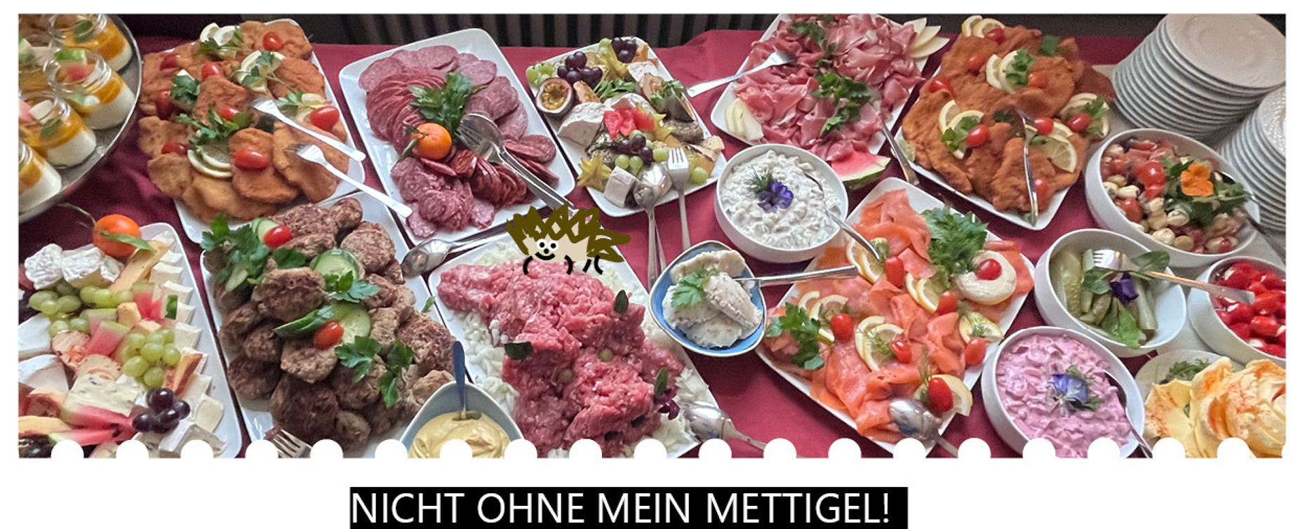 Illustres Beisammensein bei Speis und Trank: Wer sieht den Schaukelstuhl, wer findet den Zwerg?