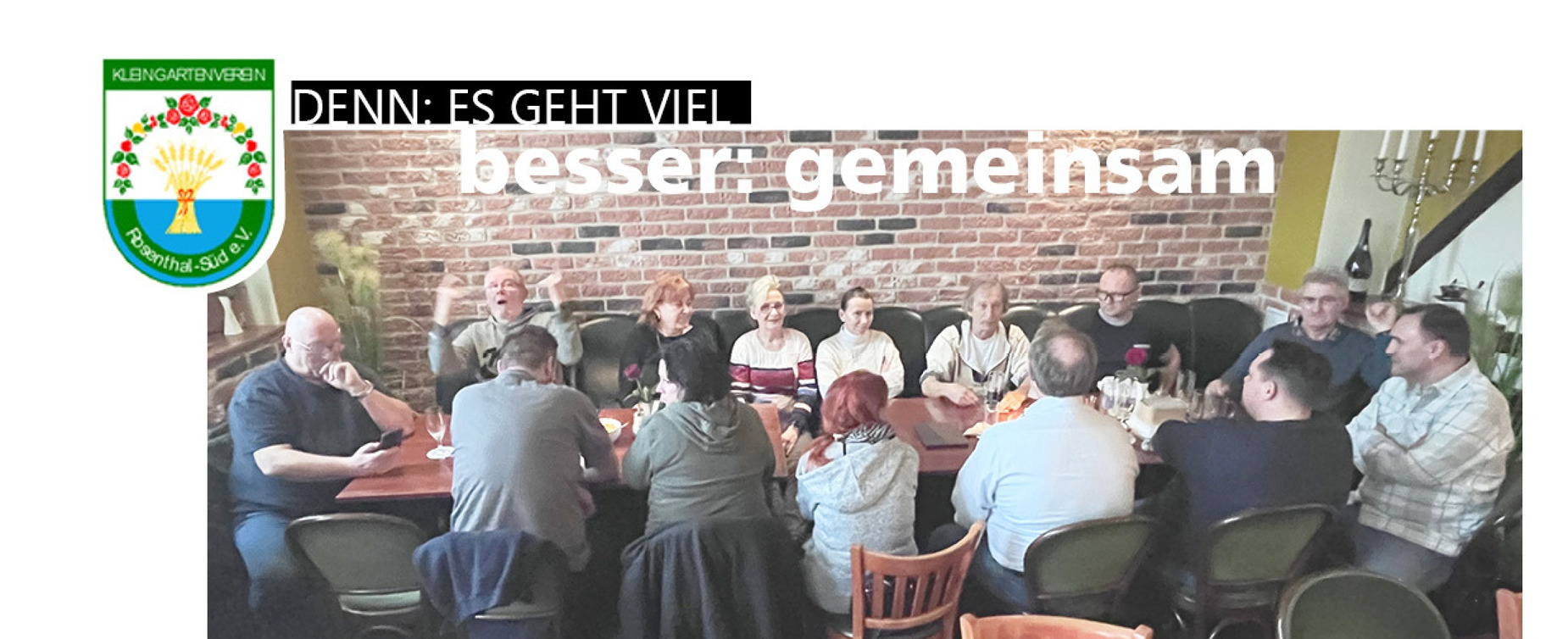 Pünktlich zur Schneeschmelze am 22. Februar wolten wir uns bei allen Aktiven des Vereines bedanken, für die tolle Mitarbeit und Unterstützung im KGV Rosenthal-Süd, denn es geht nur mit Euch! Am gut bestückten und gut geglückten Buffet in der Gaststätte Schaukelpferd haben wir Kraft getankt für den bevorstehenden Frühling und das Zusammenfinden in unserer Kolonie. Wir freuen uns schon, dass es bald wieder losgeht und sind gespannt, ob wir im kommenden Jahr noch den ein oder anderen mehr zur Dankeschön-Veranstaltung einladen dürfen: tatkräftige Unterstützung und frisches Blut sind herzlich willkommen!